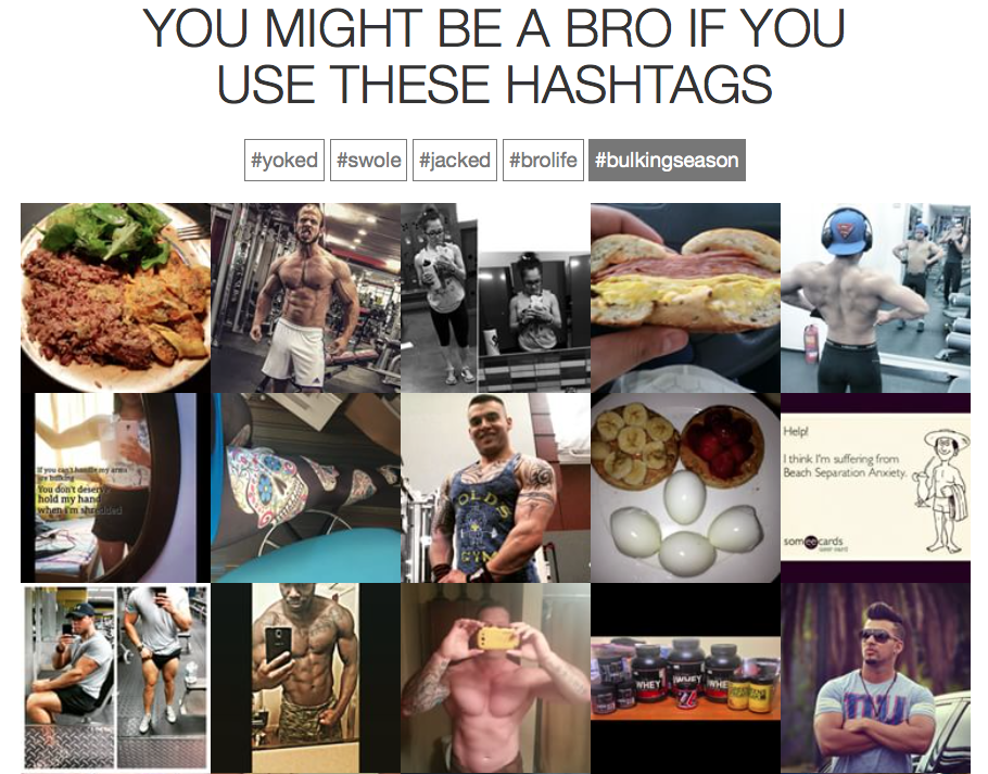 My favourite feature however is a nifty Instagram gallery of photos with the hashtags #yoked, #swole, #jacked, #brolife and #bulkingseason – use of which being a possible sign that you’re a bro.